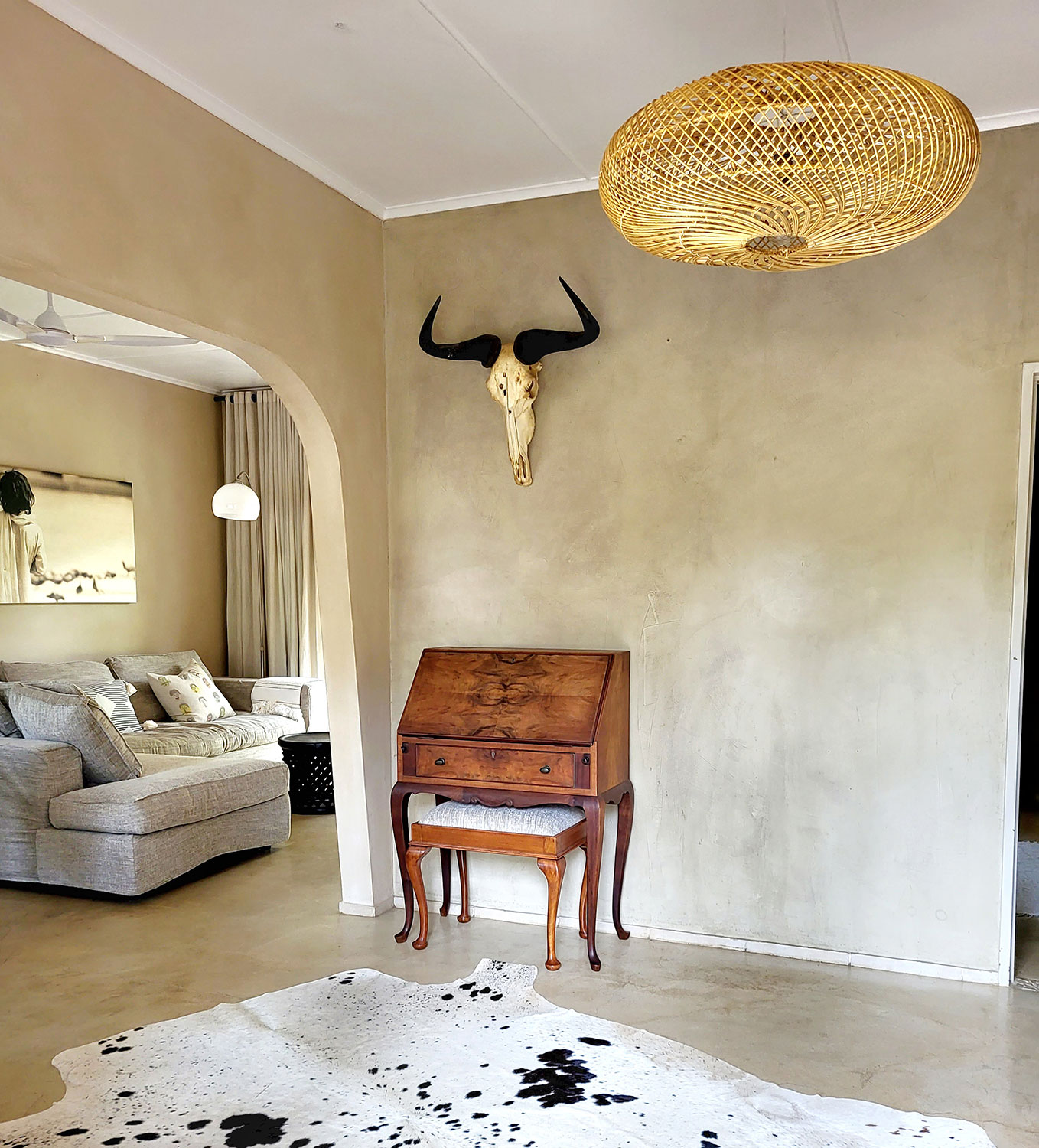 Nkawu Cottage is decorated with a professional touch as Isabelle is a paint technique specialist.